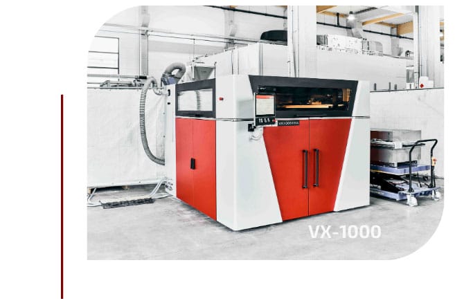 A VX4000 é o maior sistema de impressão 3D para moldes de areia do mundo, com uma área contígua de 4 x 2 x 1 metros. A VX4000 é incomparável em termos de volume de construção. Ao contrário dos sistemas de impressão 3D menores da Voxeljet, a VX4000 utiliza um processo de construção de camadas inovador e patenteado que garante tempos de deslocamento consistentes, máxima precisão e qualidade dos componentes, mesmo para pedidos de produção em grande volume e séries de componentes menores.